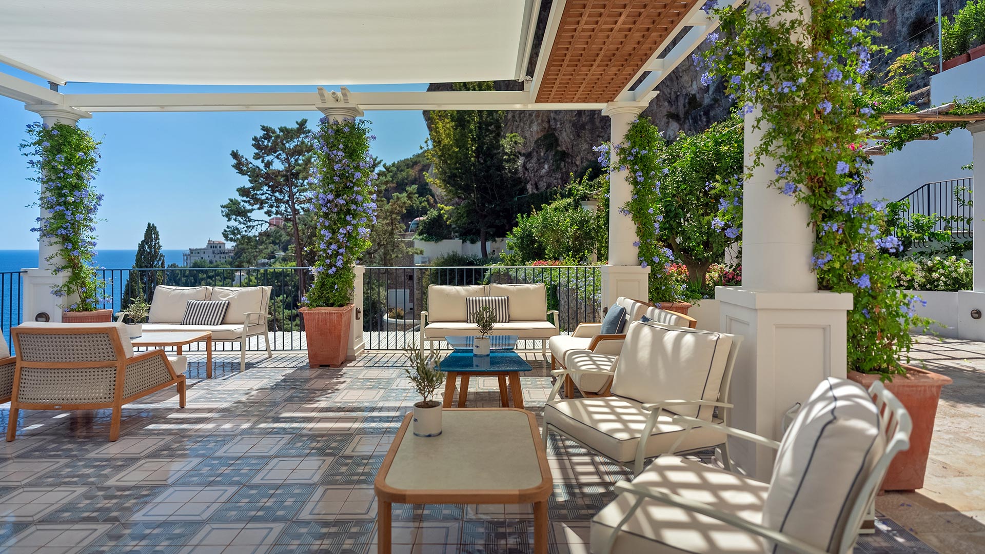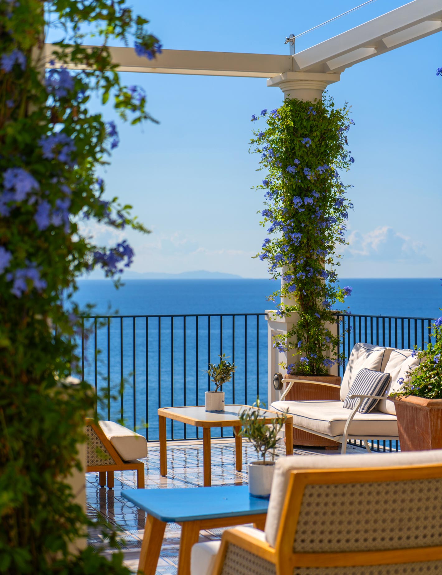 Enjoy an aperitif at sunset or a moment of peace and relaxation after dinner, all set against the stunning backdrop of the most iconic terrace on the Amalfi Coast.