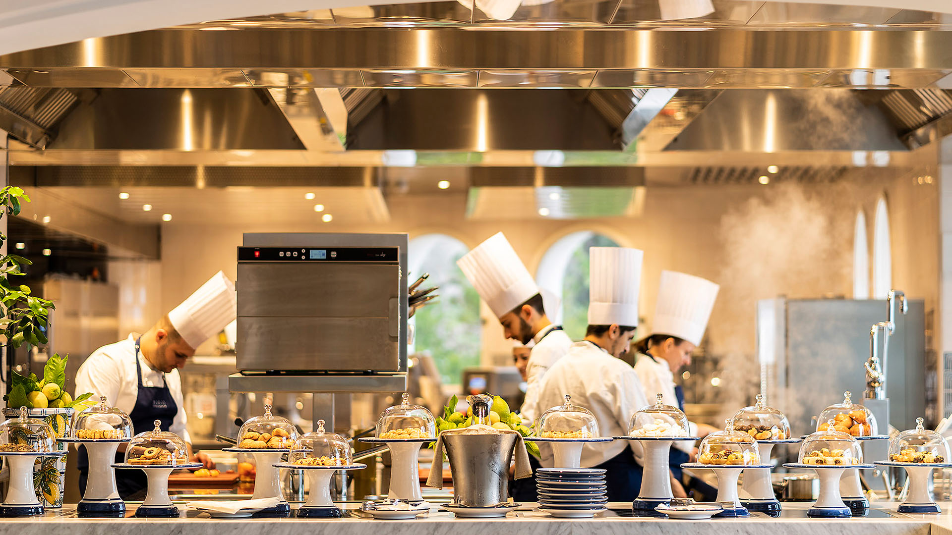 I nostri chef sono sempre presenti sin dal mattino per soddisfare i desideri degli Ospiti, preparando al momento crêpes, French toast, uova, pesce, carne, e perché no, anche un piatto di spaghetti!