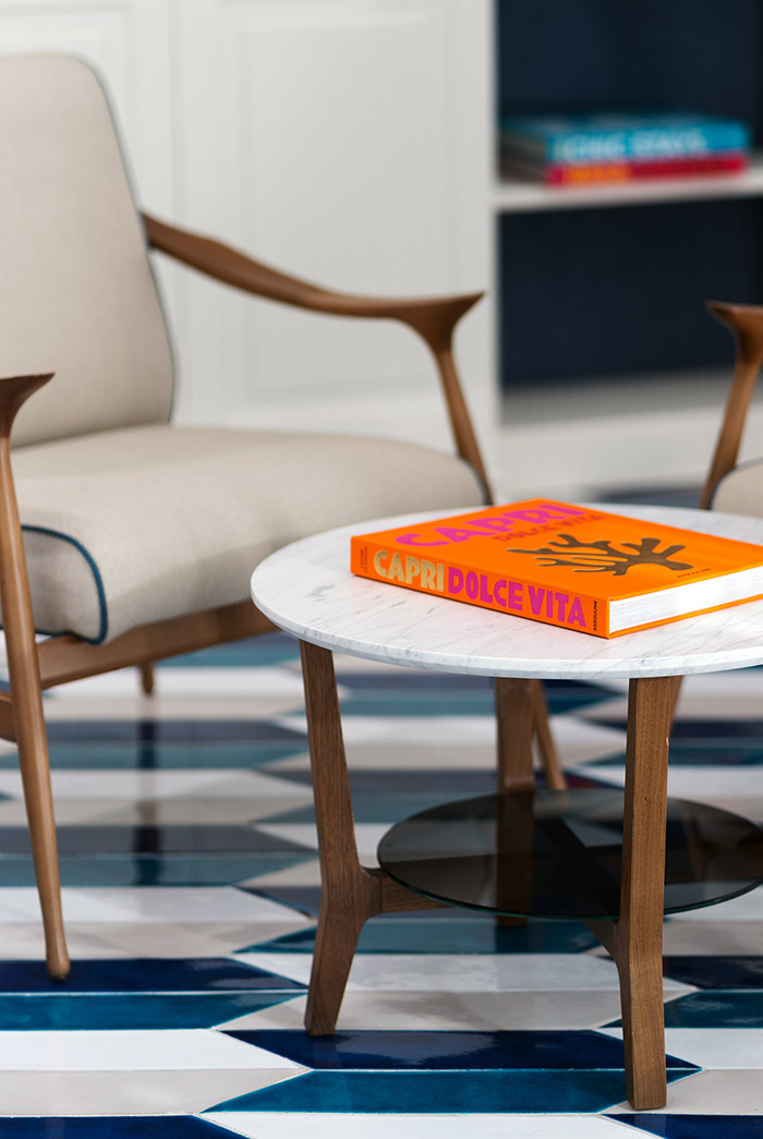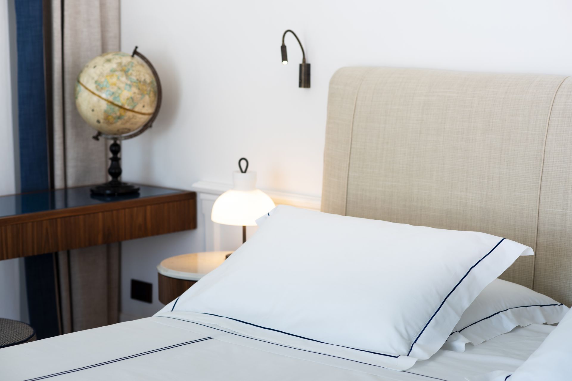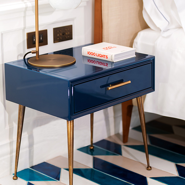 La suite è arredata con pezzi di arredo dei migliori marchi italiani e con mobili su misura progettati dai nostri designer guidati dall'architetto Rino Gambardella e realizzati da maestri artigiani locali.