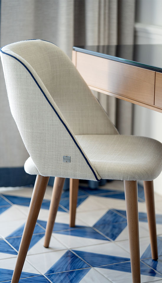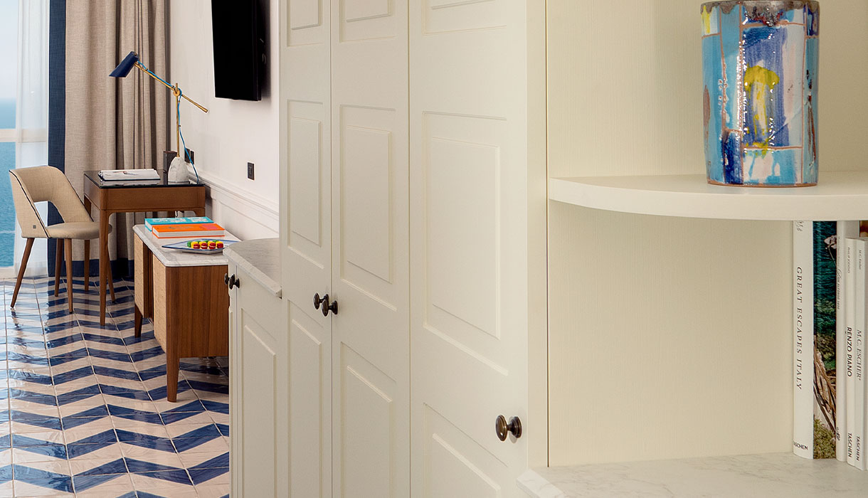 The room is decorated with pieces coming from a selection of some of the best Italian brands as well as bespoke furniture designed for this space by a team lead by our architect Rino Gambardella and made by local craftsmen.