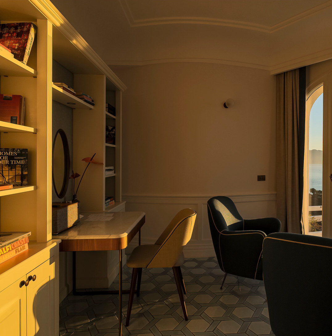 The suite is decorated with pieces coming from a selection of some of the best Italian brands as well as bespoke furniture designed for this space by a team lead by our architect Rino Gambardella and made by local craftsmen.