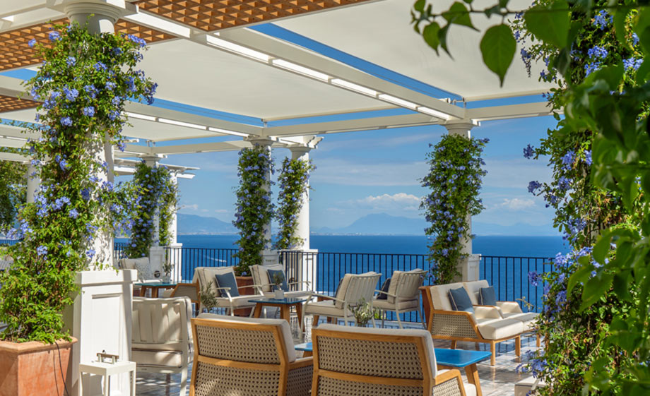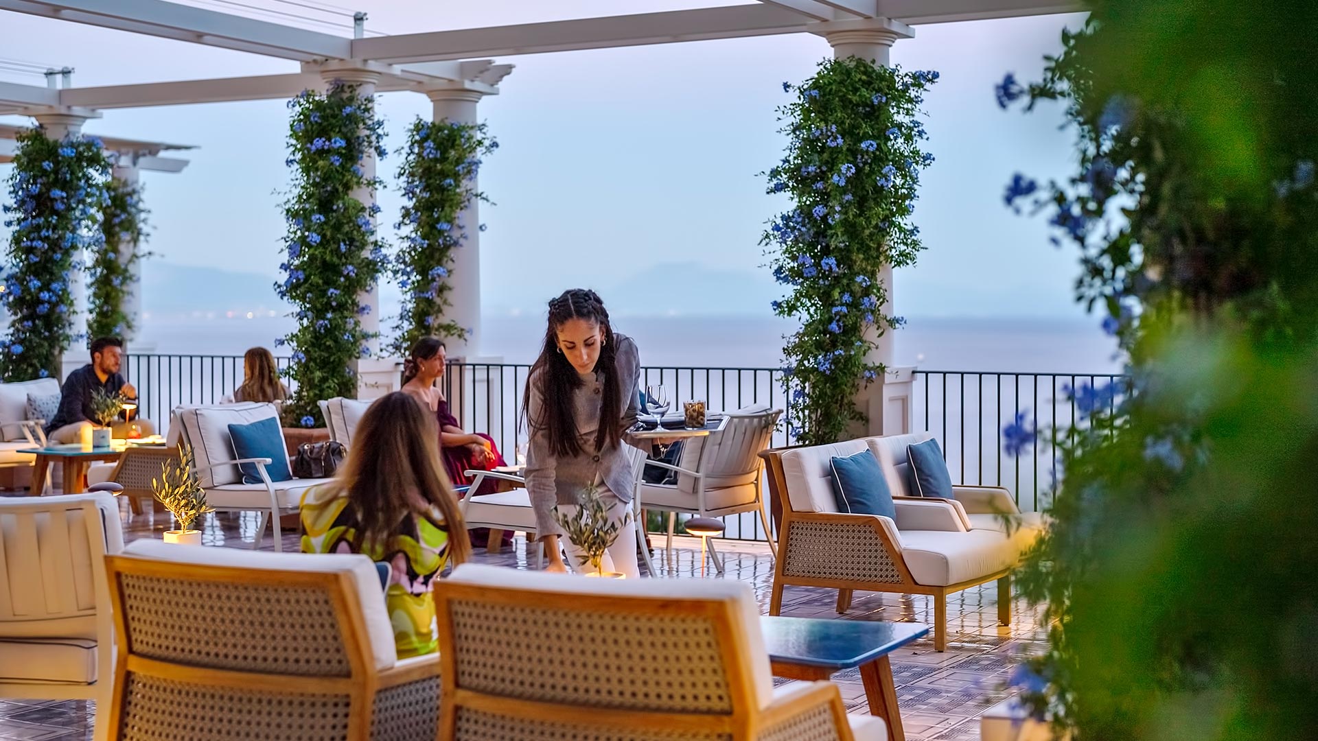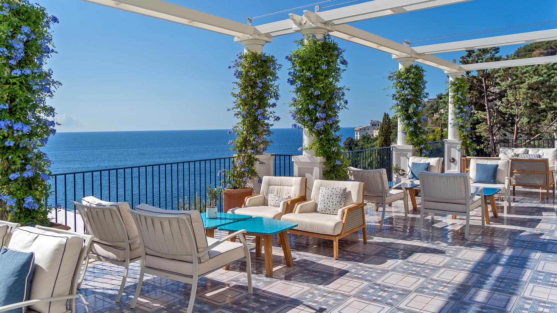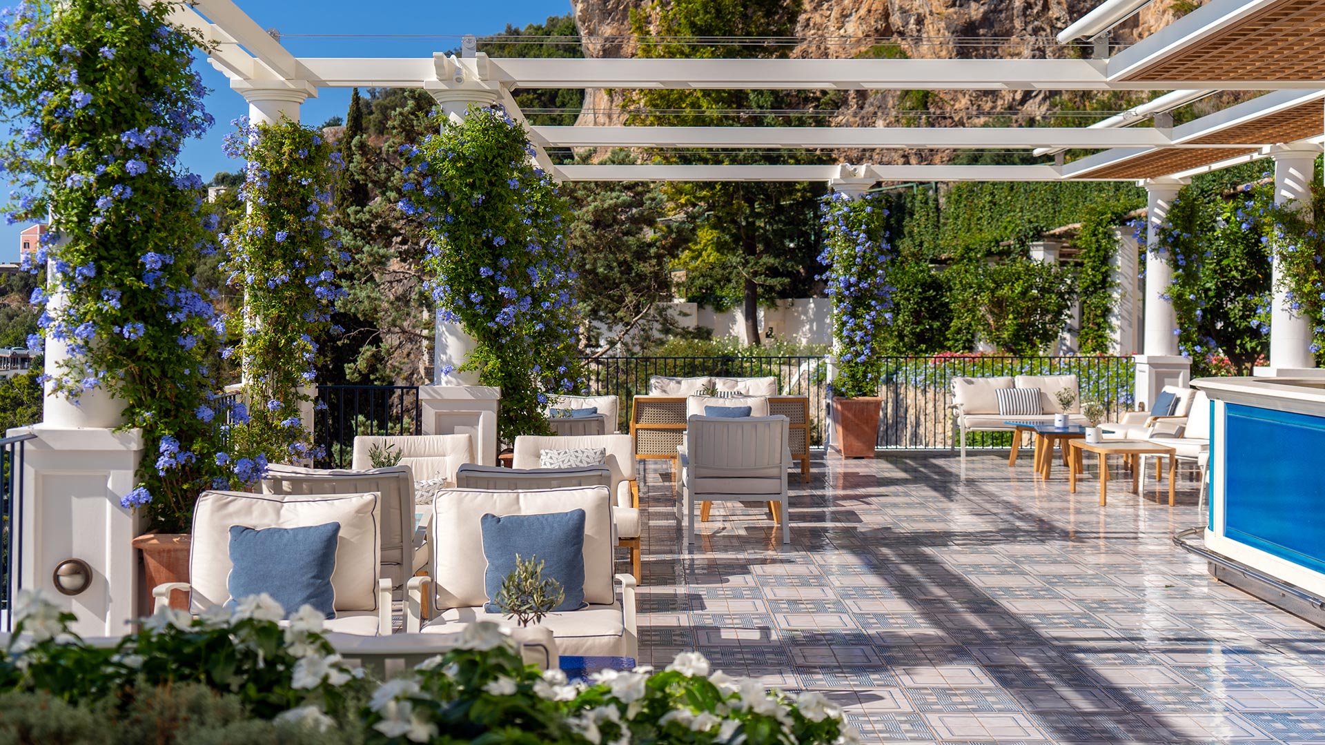 Enjoy an aperitif at sunset or a moment of peace and relaxation after dinner, all set against the stunning backdrop of the most iconic terrace on the Amalfi Coast.