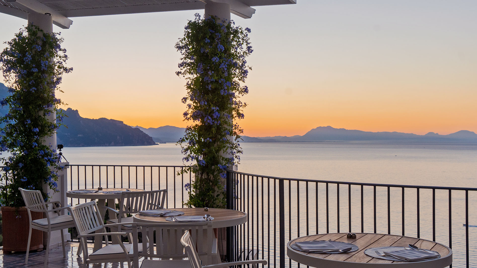 Una suggestiva terrazza panoramica affacciata sulla costa.