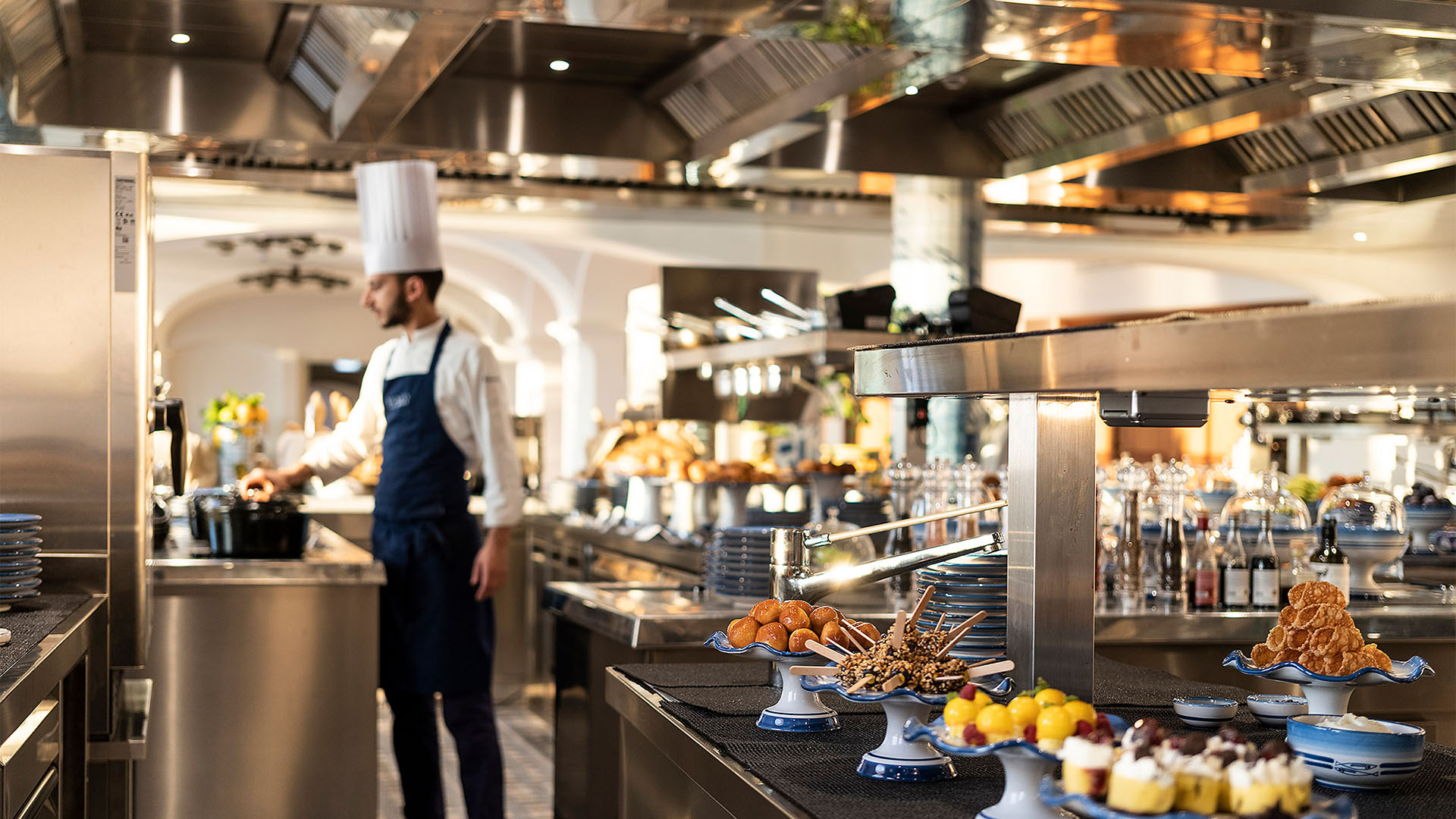 I nostri chef sono sempre presenti sin dal mattino per soddisfare i desideri degli Ospiti, preparando al momento crêpes, French toast, uova, pesce, carne, e perché no, anche un piatto di spaghetti!