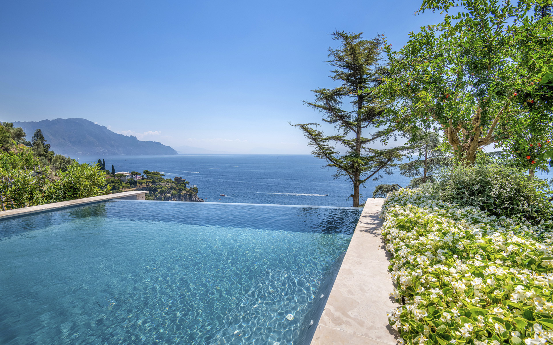Piscina privata a sfioro riscaldata (fino a 30 gradi), vista panoramica sulla costa