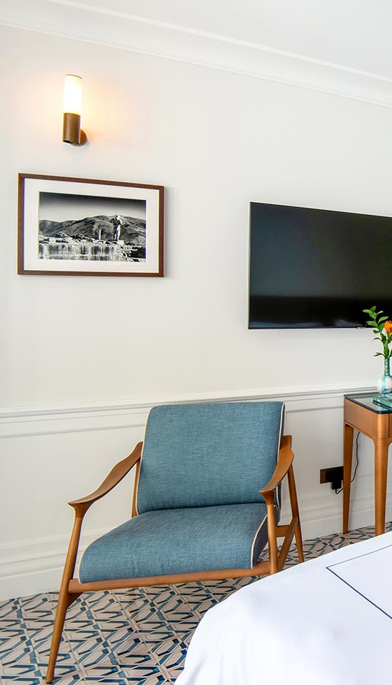 The Classic rooms (Sized up to 25 sqm/ 269sqft) are located on the side of the building overlooking the typical coastal terraced gardens from it floor to ceiling windows.