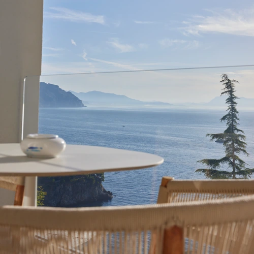 Especially comfortable and roomy with modern amenities, our Deluxe Sea View Room creates a spectacular setting for those looking to enjoy the panoramic views of the Amalfi Coast.
