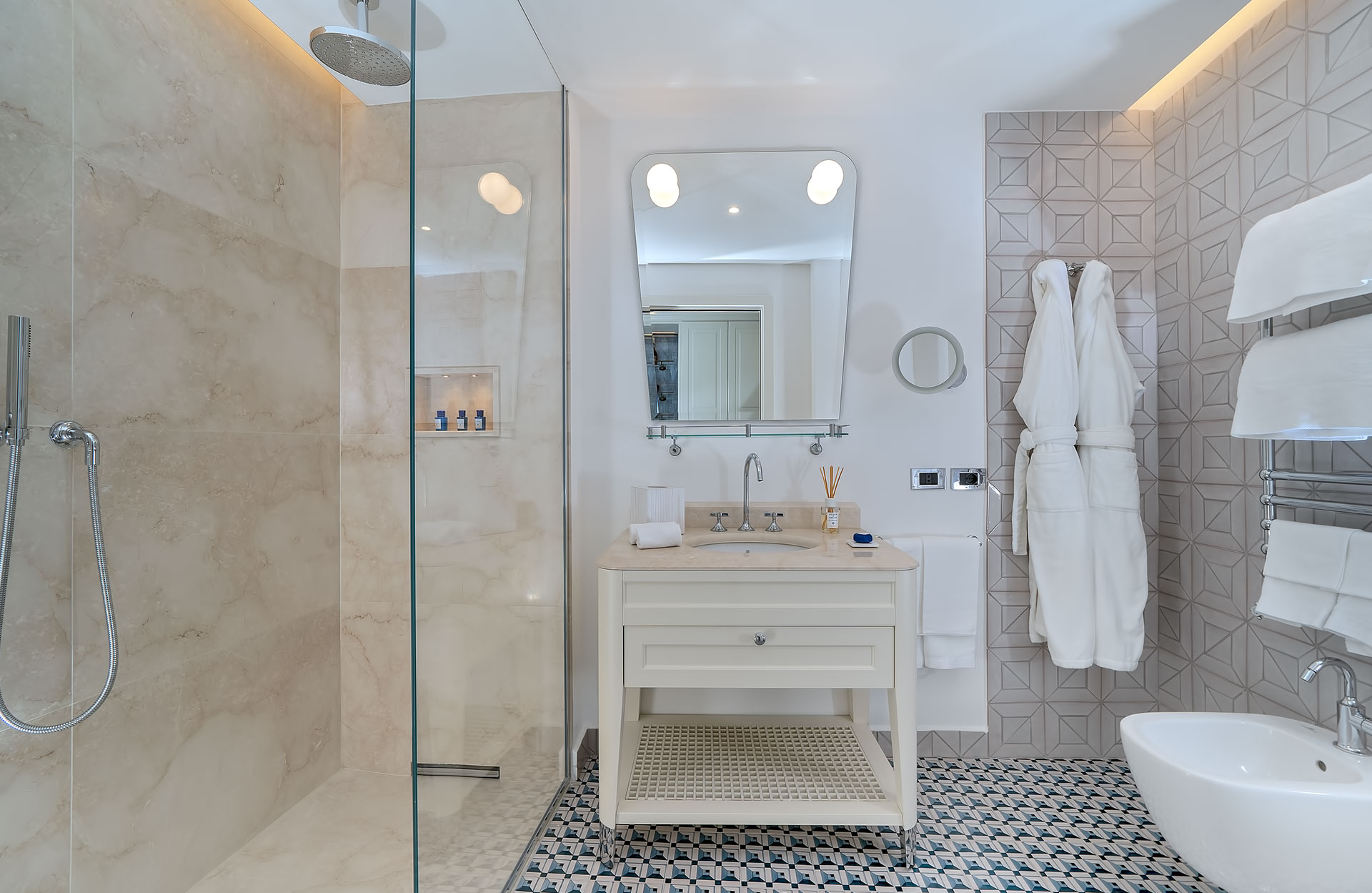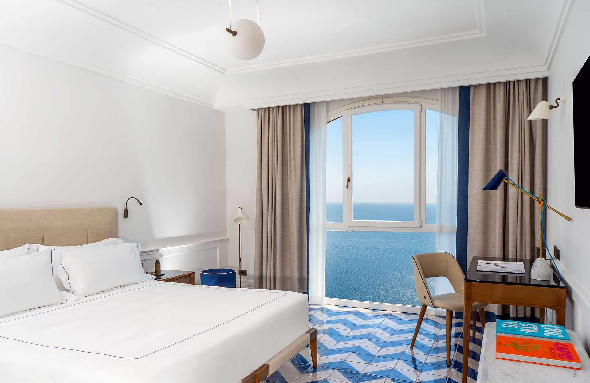 Decisively luxurious, the room features handmade ceramic tiles, a full-size marble bathroom and a stunning sea view also with private balcony or french balcony.